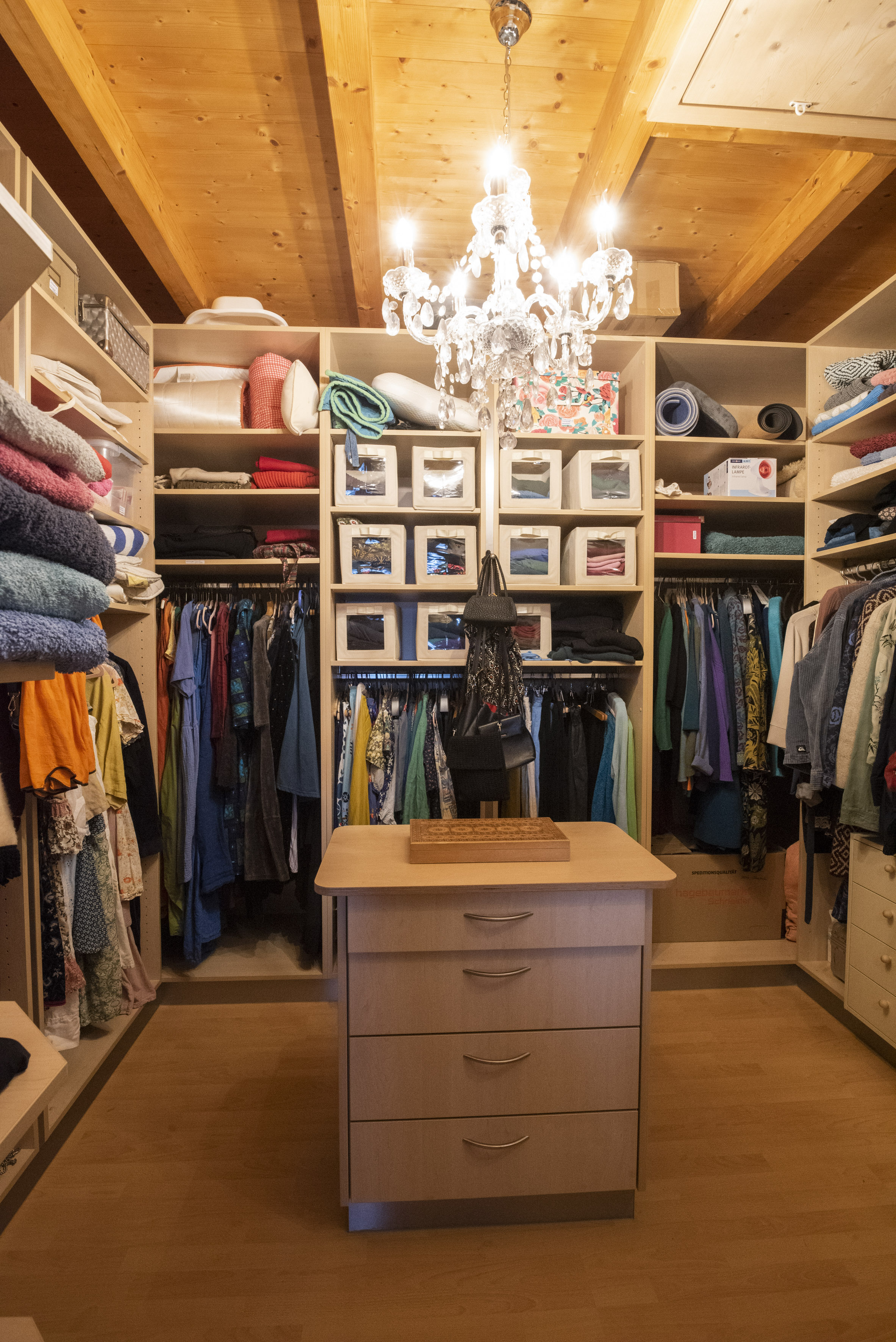 Besonders exklusiv präsentiert sich die Aufteilung der privaten Räumlichkeiten: Die beiden separaten Schlafbereiche mit ihren en-suite Bädern bieten maximale Privatsphäre. Jeder dieser Bereiche verfügt über einen eigenen Flur und einen vorgelagerten Balkon. Die hochwertige Ankleide, am Master-Bedroom angegliedert, wurde mit besonderem Augenmerk auf Funktionalität und Eleganz konzipiert. Ein zusätzlicher, isolierter und nicht verschalter Speicherraum mit unbehandeltem Dielenböden über der Ankleide bietet weiteren praktischen Stauraum, der sich bei Bedarf auch mit wenig Aufwand zu einem weiteren Galerieraum über dem Schlafzimmer öffnen ließe, da Stromanschlüsse vorhanden sind.